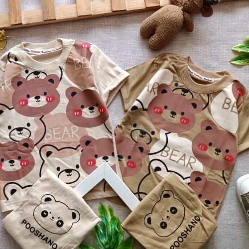 تیشرت و شلوارک راه راه کرم شکلاتی
