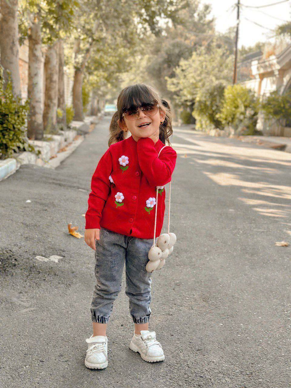 ژاکت بافت آلبالو و گل