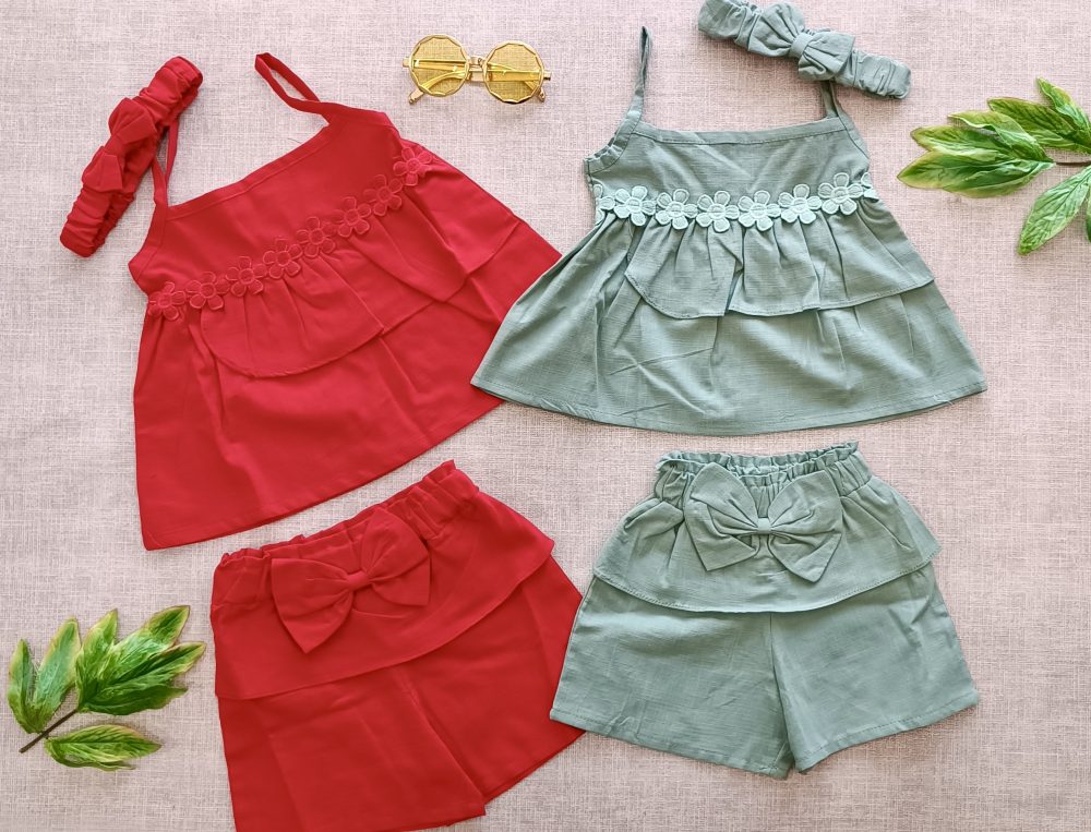 *این ست شامل تاپ و شلوارک و تل می باشد.