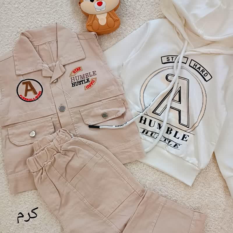 سایز 3 تا 4 سال: قد جلیقه 38_ پهنا جلیقه 32_ قد هودی 38_ پهنا هودی 31_ قد شلوار 55