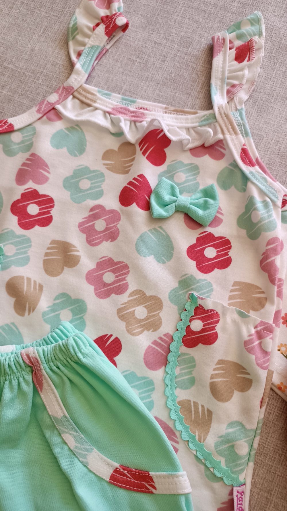 سایز5===قد تاپ 38…..پهنا تاپ 26…..قد شلوارک 30